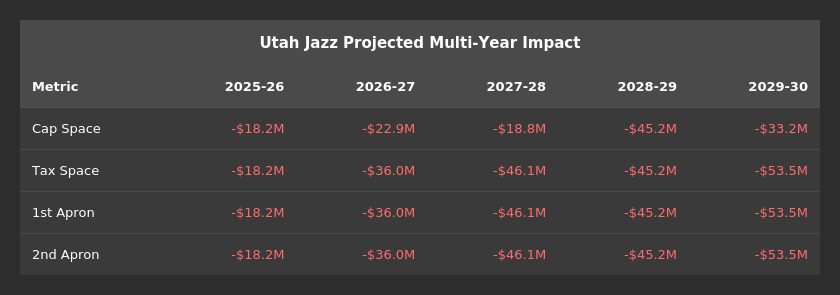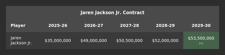 Why acquire Jackson Jr. now? You may recall that Memphis recently renegotiated and extended his contract. This resulted in his 2025-26 salary being a good bit less than his salary for the remaining years. Which, in turn, makes it easier to acquire Jackson from a salary matching perspective (Utah has to send less salary).