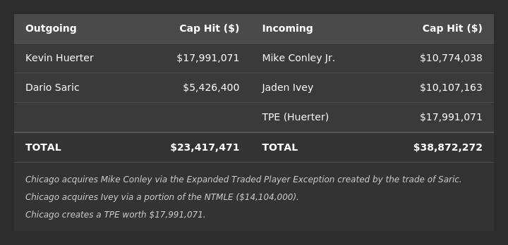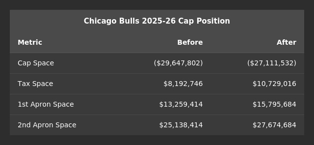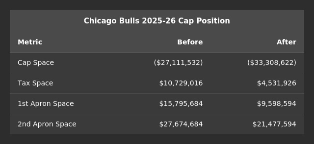 Chicago also creates a TPE worth $17,991,071, which will expire one year from the date the trade is finalized with the league office.