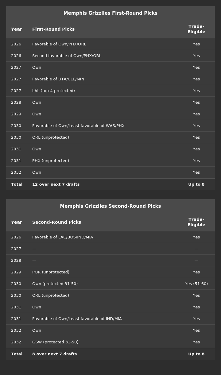 Draft Capital. The Grizzlies start their rebuild with a surplus of draft capital, and I suspect they’ll only add to this stockpile: