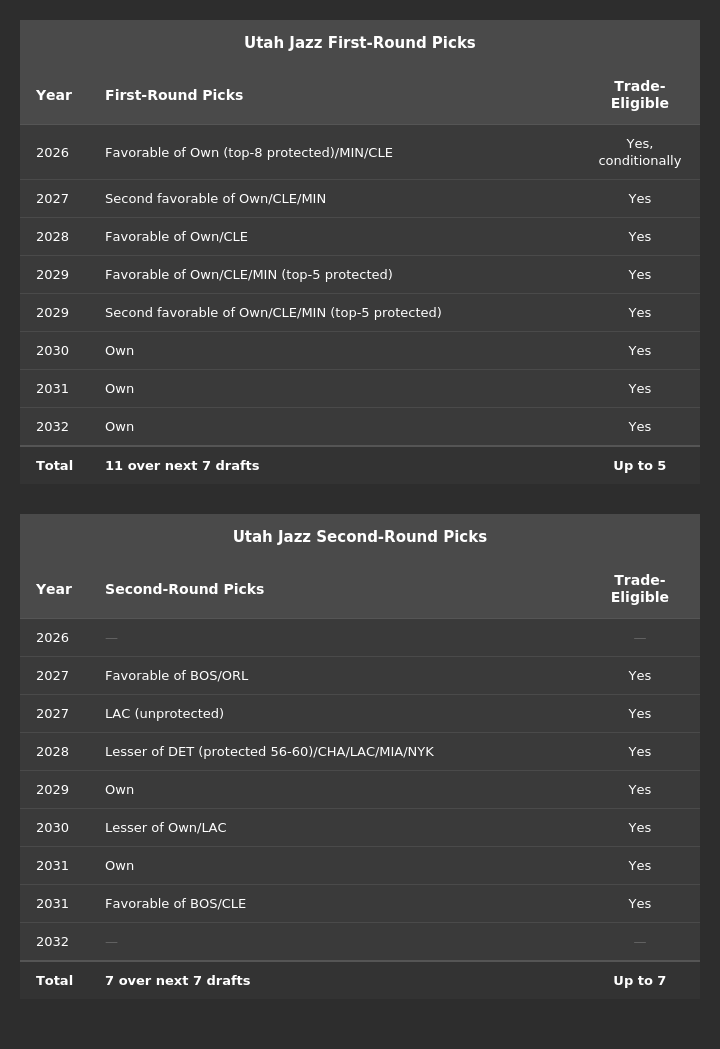 Utah also acquires the three 1st Round Picks: (1) most favorable 2027 of CLE/MIN/UTA; (2) 2027 LAL, and (3) 2031 PHX.